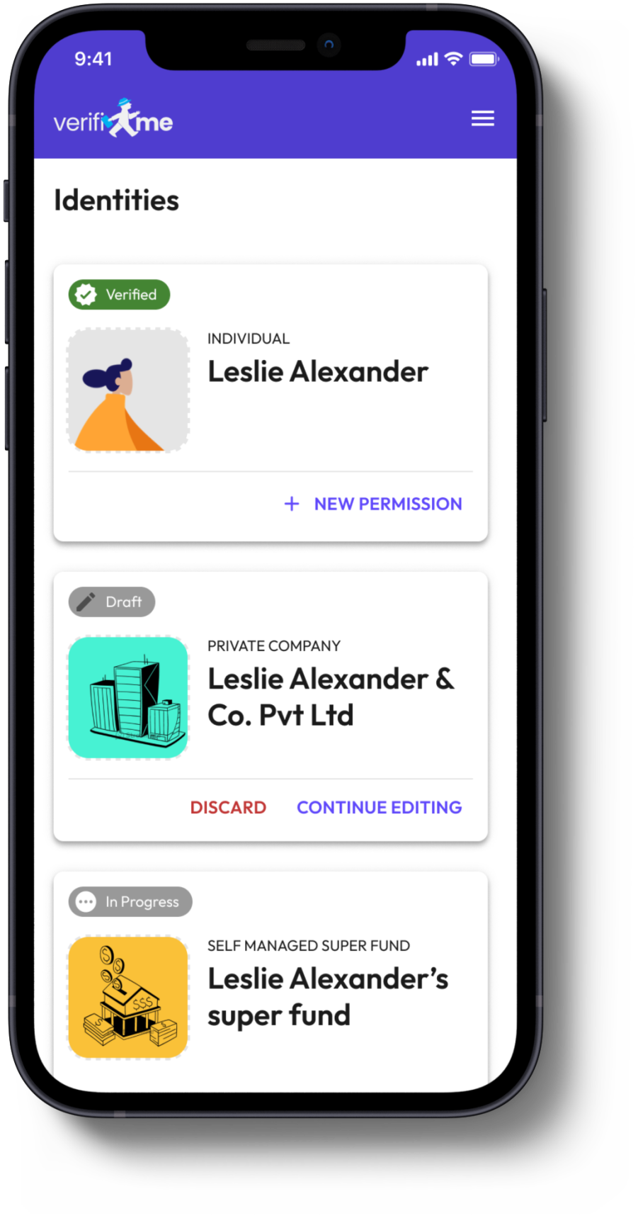 Use VerifiMe to allow your customers to prove who they are without risk of exposing their personal information. They can also use it to verify their SMSF, trust or company. It’s free to use and simple to set up.