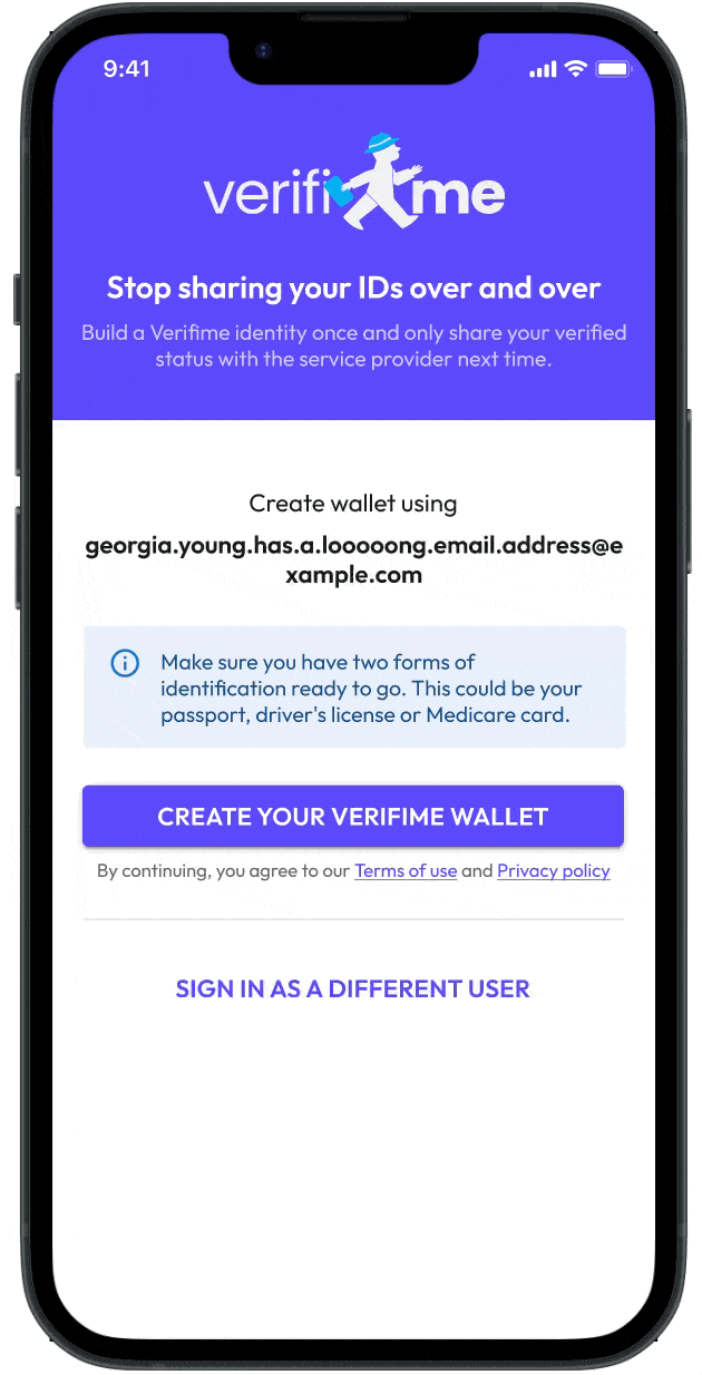 Step 2. Register and verify the email address you would like to use to access your VerifiMe Wallet