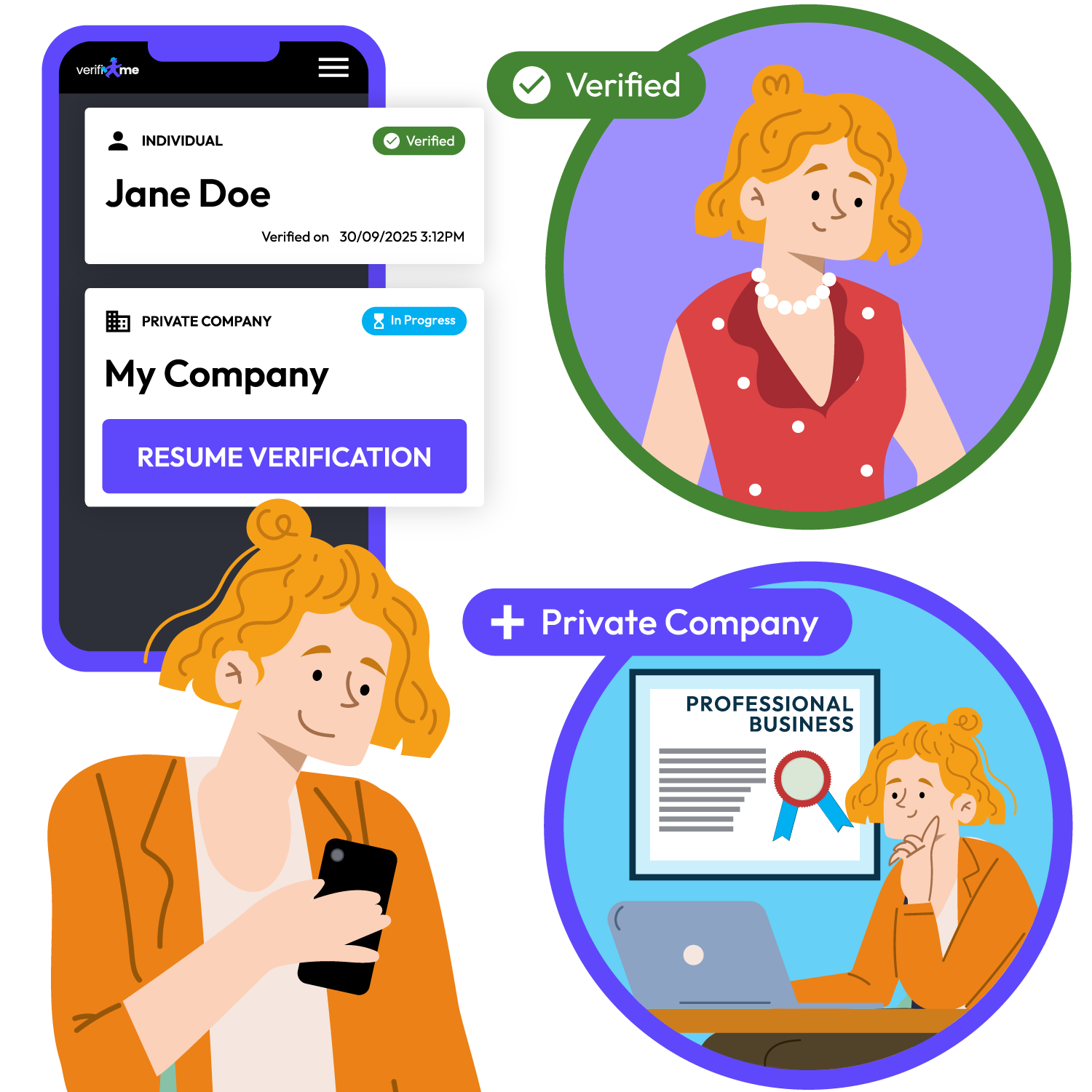 Set your policies once; automation handles the rest. And here's what makes VerifiMe different: your clients store their verified credentials in a reusable wallet. When they've already been verified by another VerifiMe business, you access that verification at no cost — no redundant checks, no wasted time.