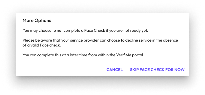 As part of the identity verification process, you will be asked to complete a real-time face check. This involves checking your biometrics and liveliness, which some people may find uncomfortable.